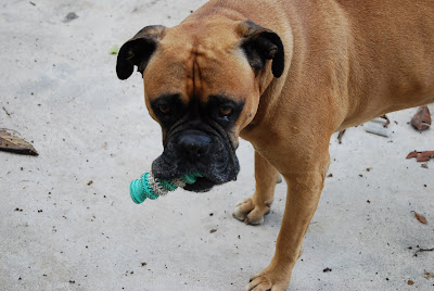 fez 8 anos na semana passada e é a prova de que os boxers são eternas "crianças". Sempre brincalhão, "rouba" os chinelos e sapatos de toda a família e foge para que lhos tentemos tirar, chora quando quer passear ou quando não lhe abrem as portas dos quartos ... e continua a pedir colo, apesar dos seus 32 kg :)